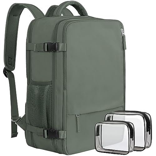 Business professionals and frequent travelers who need reliable laptop protection will find this large expandable travel backpack delivers exceptional versatility. The bag measures 17.32×12.2×6.7+1.57 inches and expands to 40L capacity. You’ll store your 17.3-inch laptop in the cushioned compartment with complete protection. Multiple hidden pockets organize your gear efficiently, while two included toiletry bags keep essentials accessible. The water-resistant polyester construction resists scratches and wear. You can convert this backpack into a briefcase using hideaway shoulder straps. A luggage belt attaches to suitcases for seamless transport. The hidden anti-theft pocket on the lower back secures valuables like passports and wallets during travel.