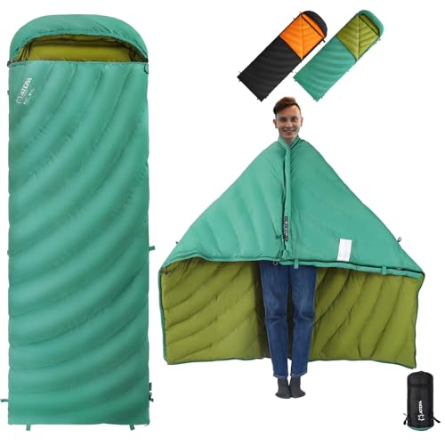 Best For: Versatile outdoor enthusiasts who need a multi-functional sleeping system for various camping scenarios and want eco-friendly gear that can adapt from cold-weather sleeping bag to wearable poncho or blanket.
